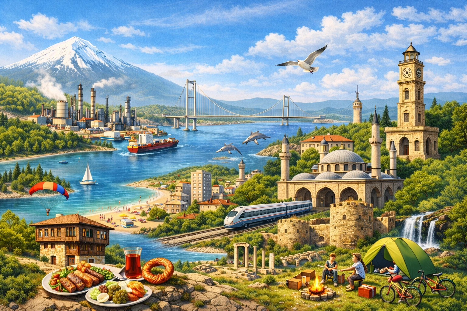 Kocaeli, Türkiye’nin kuzeybatısında, Marmara Bölgesi’nde yer alan ve hem sanayi gücü hem de doğal zenginlikleriyle dikkat çeken önemli bir şehirdir. İstanbul’a olan yakınlığı, gelişmiş ulaşım ağı ve stratejik konumu sayesinde Türkiye’nin en önemli ekonomik merkezlerinden biri haline gelmiştir. Ancak Kocaeli yalnızca sanayi şehri değildir; aynı zamanda doğa turizmi, sahil yaşamı, yaylaları ve kış sporlarıyla da öne çıkan çok yönlü bir destinasyondur.